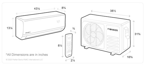 Pioneer® Quantum Hyperformance™ 24,000 BTU 22.5 SEER2 230V High-Wall Ductless Energy-Star Mini-Split Air Conditioner Inverter Hyper Heat Pump Full Set